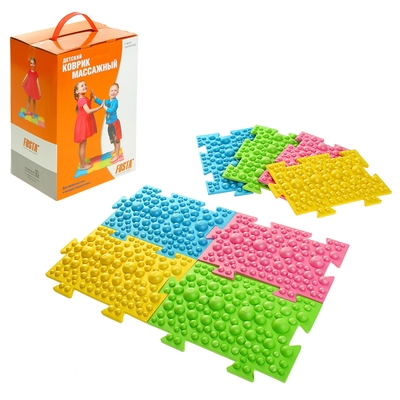 Яркий массажный коврик разработан специально для здоровья детских ножек. Он состоит из 8-ми разноцветных модулей размером 27,3х17,8 см! Можно регулировать размер и форму площадки.